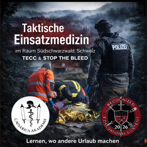 Der Kurs ist eine Mischung aus Taktik und Medizin und Behandelt die wichtigsten Medizinischen Skills der Einsatzmedizin. Die Ausbildung erfolgt auf Basis der coTECC-Richtlinien.